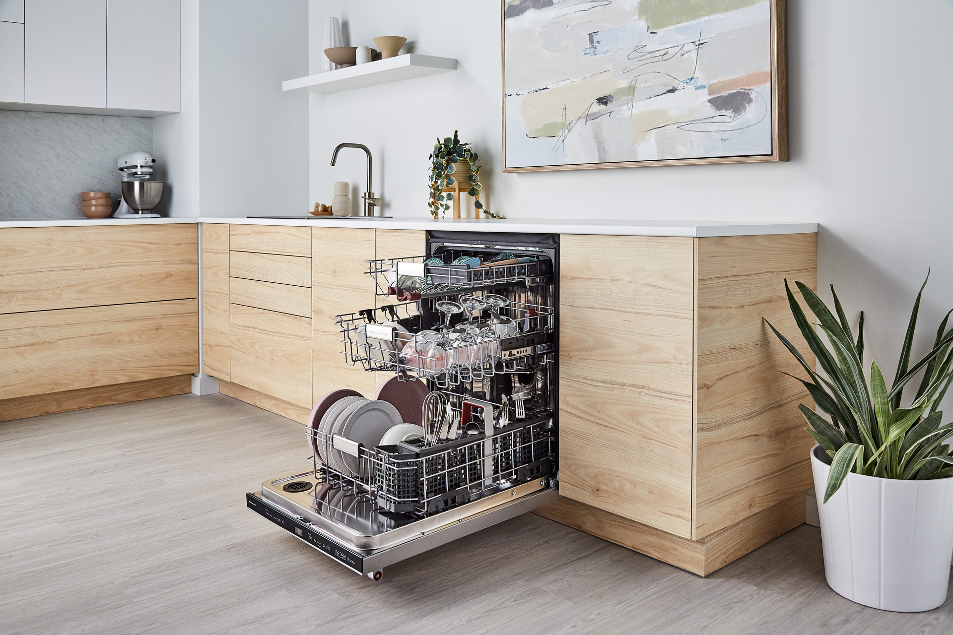 ![]() | KitchenAid® 24" PrintShield™ Stainless Steel Built In DishwasherKDTM404KPS FreeFlex™ Third RackThe largest third rack available has a deep, angled design that fits 6" glasses, mugs and bowls. It features rotating wash jets to clean items in the rack, a drying bar with tabs that help wick moisture off glasses and a removable utensil tray for cooking tools. *Among leading brands based on usable volume. Advanced Clean Water Wash SystemUses microfiltration to continuously remove food particles during the wash and rinse cycles and circulates clean water to dishes in all three racks. This allows dirty cookware and delicate glassware to be washed together in the same load. ProWash™ CycleUses sensors to measure soil levels throughout the cycle and adapts wash time and water temperature as needed for tough messes or lighter loads, because no two meals or the dishes that result are exactly the same.