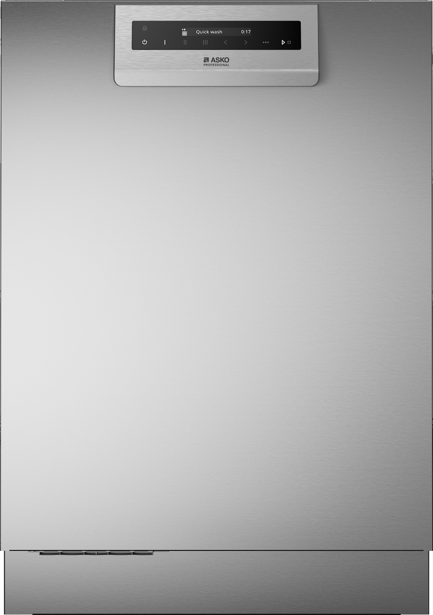 ASKO built-in dishwasher with front in stainless steel has an extra stable and durable 8 Steel™ construction and a flexible basket system with a practical top basket for cutlery and knives. The large (XXL) internal loading height means that there is plenty of room for different types of loads. It is prepared to be connected to an external auto dose system and has double elements with a total power of 2750 W. The Turbo Combi Drying™ system effectively dries your dishes with a combination of a fan that sucks the moisture out and final drying with the door open. All of the Professional dishwashers are built for 20,000 cycles usage and the container and door is made of extra strong acid proof stainless steel. The fastest program is the Quick wash on 17 min and there is also a 29 min Sani Quick program that takes the temperature all the way up to 185F. The product can be installed in both residential as well as commercial installations.Read More